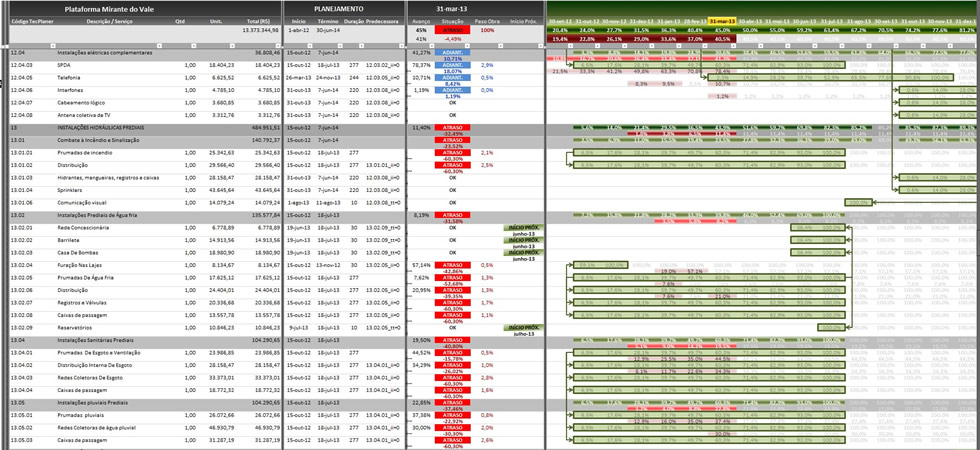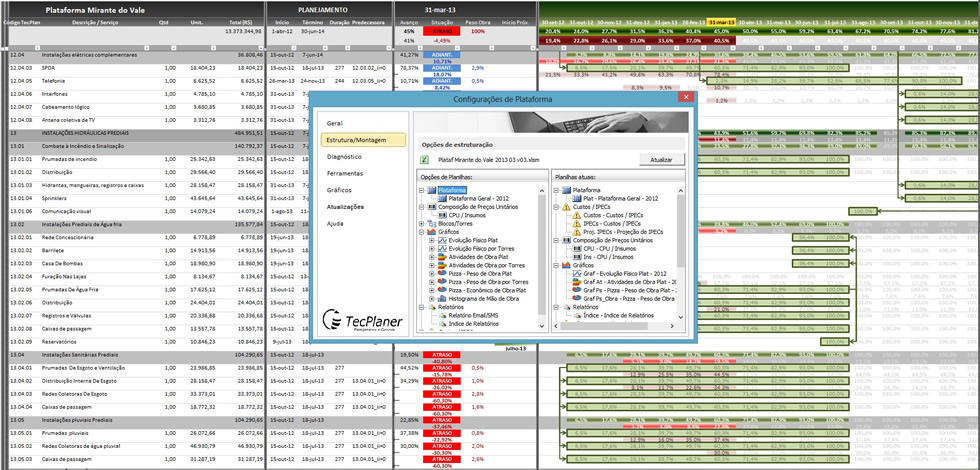 A TecPlaner irá auxiliar na fase inicial do planejamento da obra com toda sua expertise a nível nacional, desenvolvendo cronogramas de fácil visualização buscando a interação da equipe de obra. Trabalhamos com ferramentas e sistemas que se adaptam às necessidades do cliente de forma personalizada. Desenvolvemos plataformas de planejamento utilizando diversos softwares.